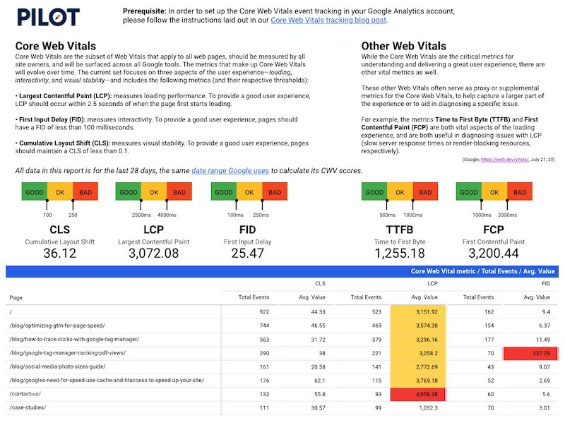 Pilot’s Google Data Studio dashboard for monitoring Core Web Vitals