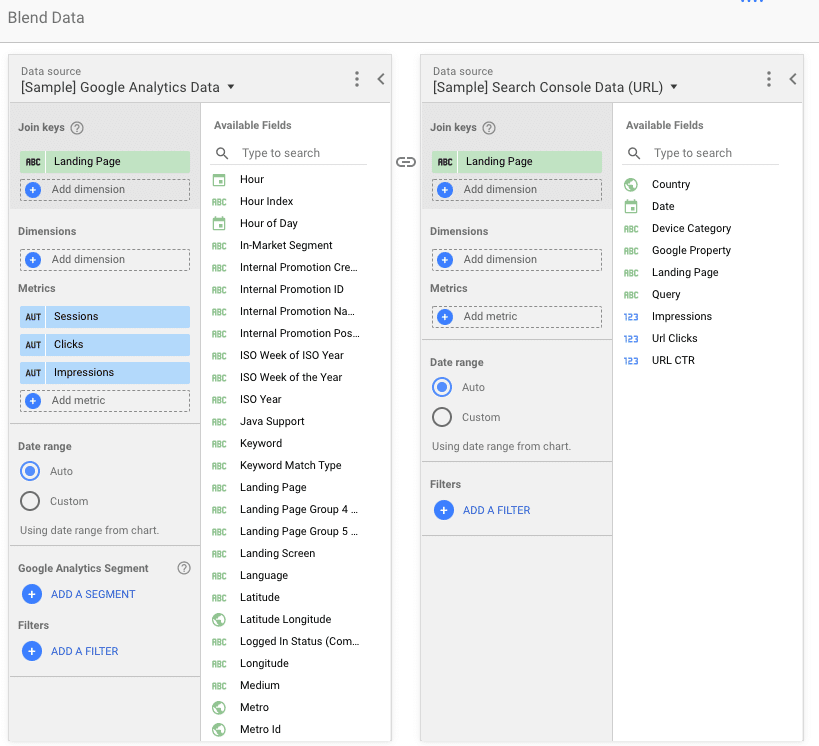 In order to combine data sources, you must have a common element in each data set. This is referred to as a “join key.” Blending data gives you the opportunity to analyze and compare the relationship between the data in one source, making it a simple alternative to comparing back and forth between data sources.