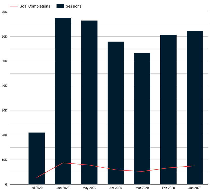 Bar charts help users understand specific data within a timeframe. For example, specific goal completions can be displayed in a bar chart to express data on a month-to-month basis.