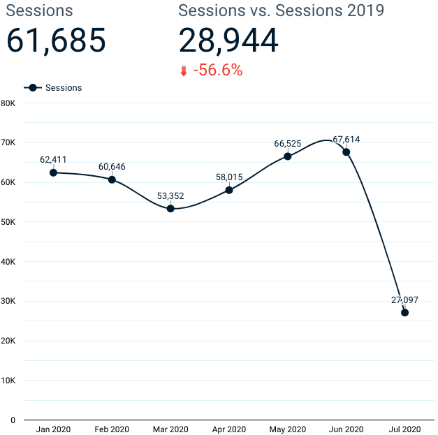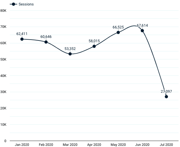 Line charts can be used to display trends. For example, in the below chart you can see the relationship between sessions and months. The viewer can better understand which months are bringing more sessions.
